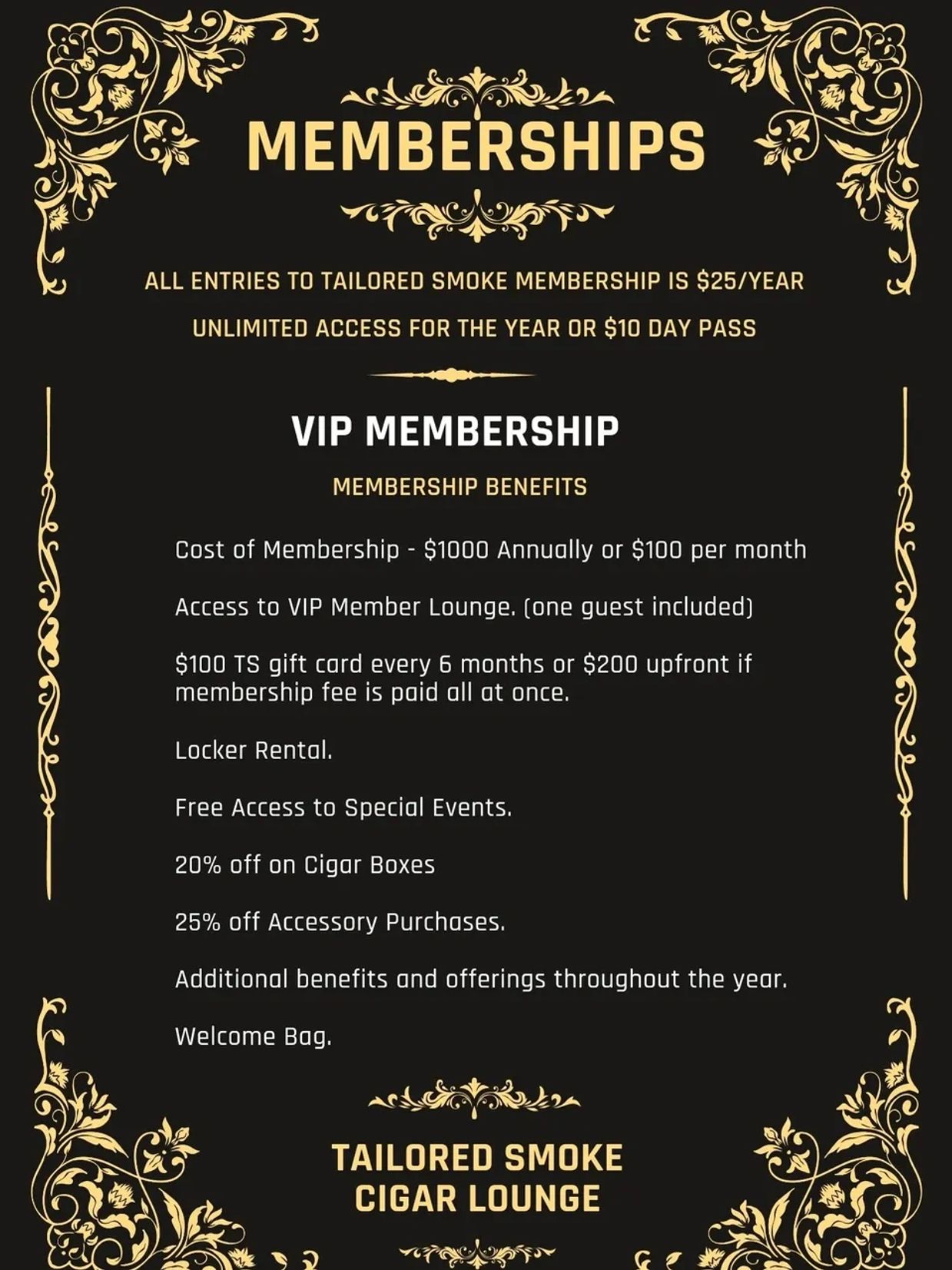 As a VIP Member, you receive numerous perks including access to the VIP lounge all to provide a more personalized and cost-effective cigar-smoking experience. The VIP lounge is a luxurious environment where members can relax, smoke cigars, and socialize in style. Check out the membership benefits below.